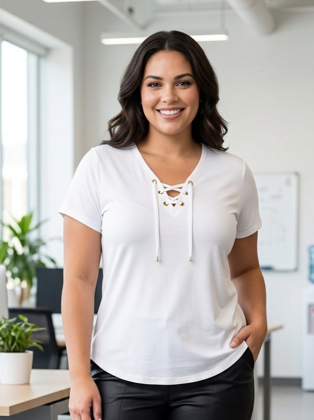 blusa ilhos com cordão tecido: viscolycra malha 96% viscose e 4% elastano