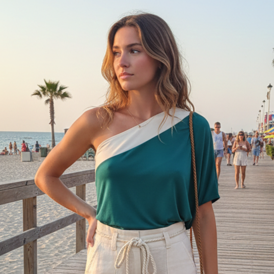 Blusa de um ombro só rayra tecido: 96%viscose e 4%elastano