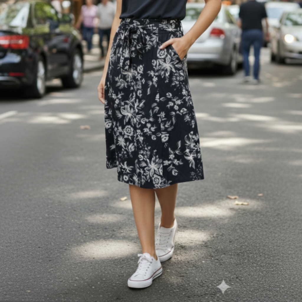 Saia Midi confortável tecido: viscoLycra malha 96% viscose e 4 elastano. Cintura com ELÁSTICO.